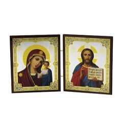 Diptychon-Ikone,"Spasitel'-Kazanskaya", aus Holz, Doppelprägung, 13x22 cm