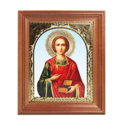 Ikone "Heiler Panteleimon" Holzumrahmung, Doppelprägung, 11 x 13 cm