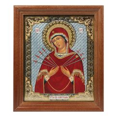 Ikone "Semistrellnaja" Holzumrahmung, Doppelprägung, unter Glas, 11 x 13 cm