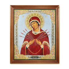 Ikone "Semistrelnaja" Holzumrahmung, unter Glas, 20 x 24 cm