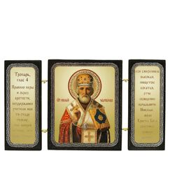 Triptychon-Ikone "Nikolaj Tschudotworez",aus Holz, Doppelprägung, 7x13 cm