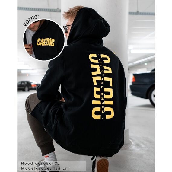 "SAEBIS - eto stil' zhizni -" Das ist das, wie wir es definieren und wofür wir gemeinsam mit unserer Community stehen! Und natürlich darf dieses Motiv, was uns und euch ausmacht, auf dem Zip-Hoodie nicht fehlen :). Der aufgenähte Tag vorne rechts verfeinert noch einmal die Optik des Zip-Hoodies. Auf der rechten Brust ist noch einmal das Logo aufgedruckt, denn nach wie vor gilt, SAEBIS auf der Brust ist ein Muss! :)