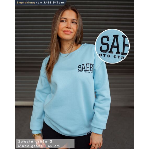 Lifestyle Damen Oversized Sweater babyblau mit Stickerei by SAEBIS®