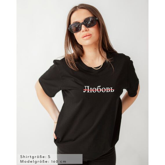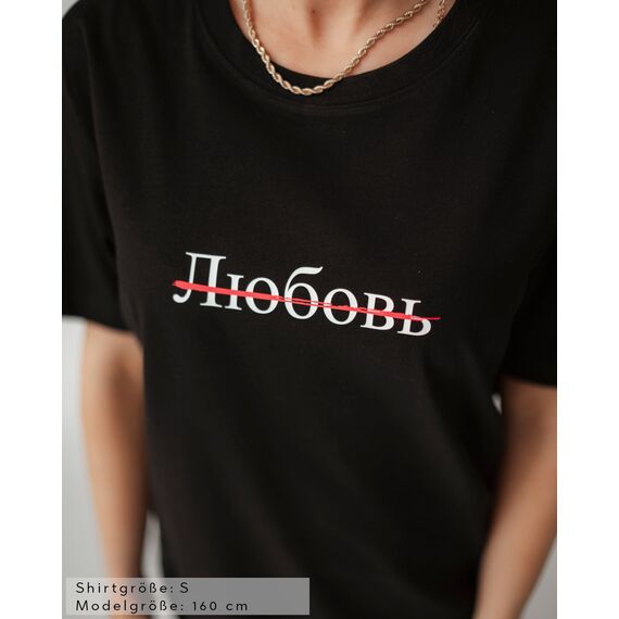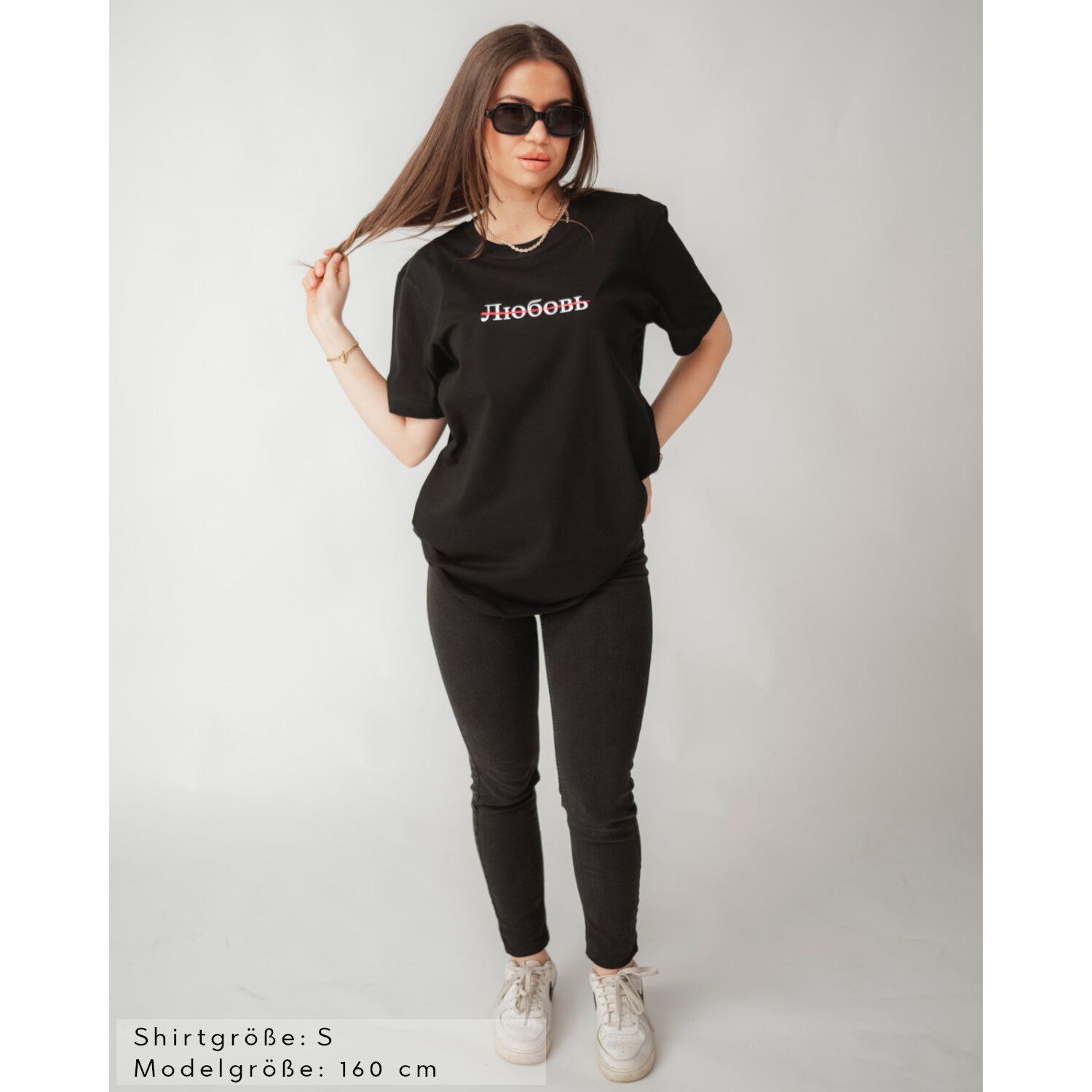 Dies ist unser erstes Shirt mit kyrillischer Schrift - Любовь.