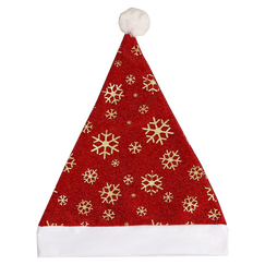 Weihnachtsmann-Mütze-Set 12 Stück Schneeflocken rot-goldene Farbe, 28x35 cm