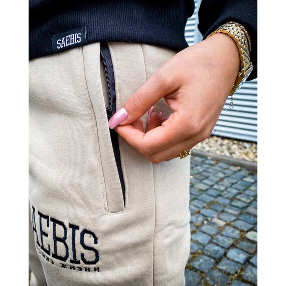 Lifestyle Damen Jogginghose beige mit Stickerei by SAEBIS®