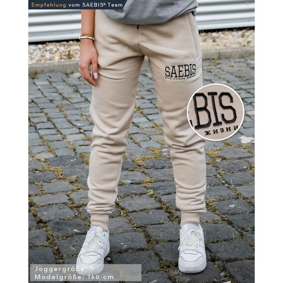 Lifestyle Damen Jogginghose beige mit Stickerei by SAEBIS®