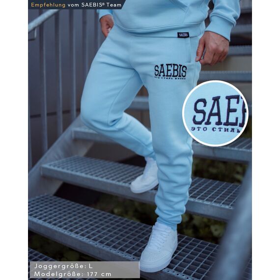 Lifestyle Herren Jogginghose babyblau mit Stickerei by SAEBIS®