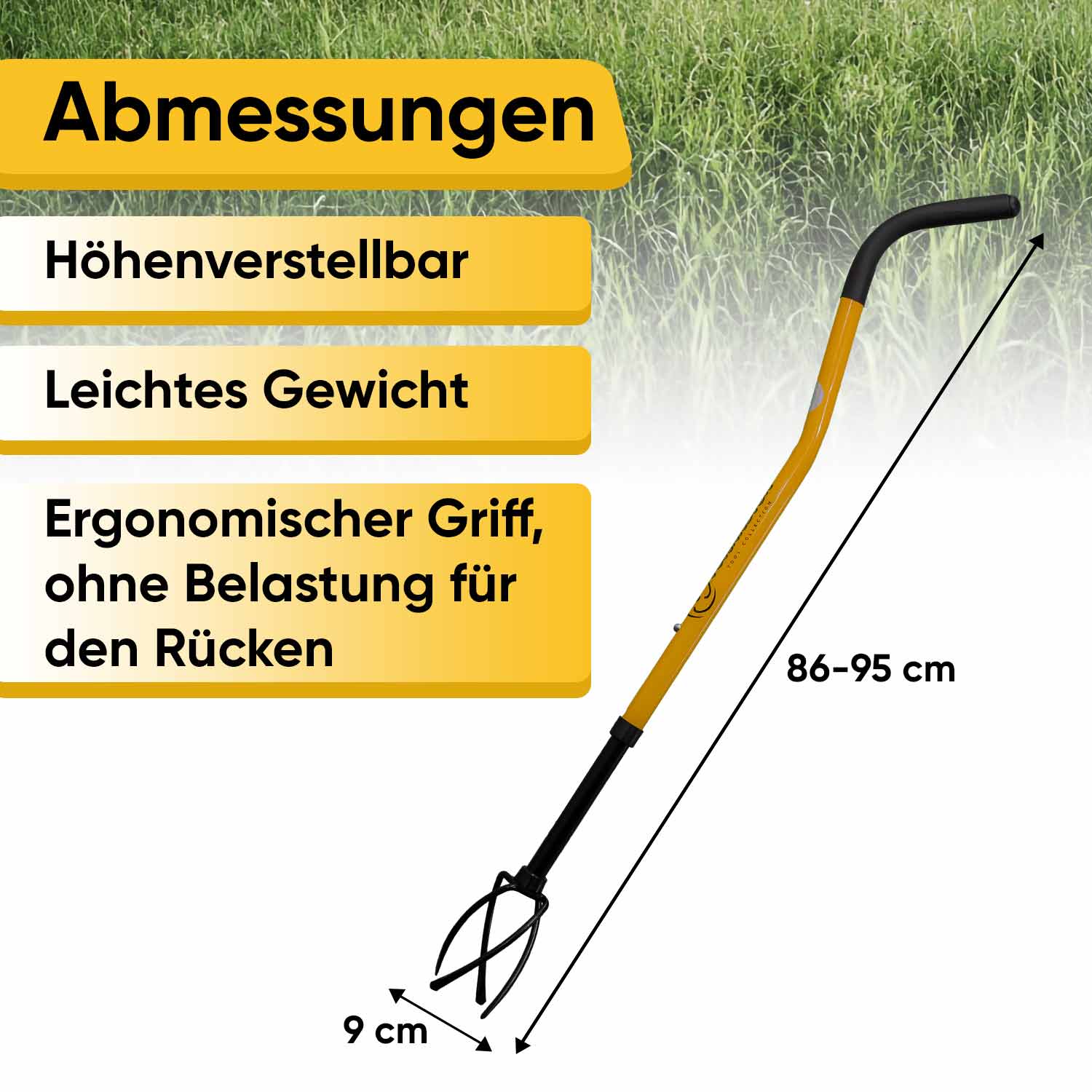 - Zwei Bewegungen um Krautentfernung. Darüber hinaus sparen Sie sich sehr viel Zeit, da mit der Gartenkralle lediglich zwei Bewegungen notwendig sind, um das gewünschte Ergebnis zu erreichen. Im Vergleich dazu sind die Bewegungen mit einer Schaufel dreimal so hoch. Dadurch profitieren Sie von einer signifikanten Reduzierung der Bearbeitungszeit.