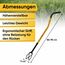 Das Gerät aus Gartenkralle, Vertikutierer und Kultivierer lässt sich auf Ihre individuelle Körpergröße adaptieren. Stellen Sie es zunächst auf eine für Sie angenehme Höhe ein. Steht es auf dem Boden, fassen Sie mit beiden Händen den Handgriff und führen den Kultivierer in einer einzigen Bewegung von einer Hüfte zur anderen. Er sollte etwa 20 cm tief in den Boden einsinken, um den Grund effektiv aufzulockern. Das Unkraut wird durch die Gartenkralle automatisch entfernt und Sie können den Vorgang nach gleichem Schema weiter fortsetzen. Schon nach wenigen Minuten werden Sie sehen, wie Ihr Boden nachhaltig gepflegt wird und die Möglichkeit erhält, wieder zu atmen.