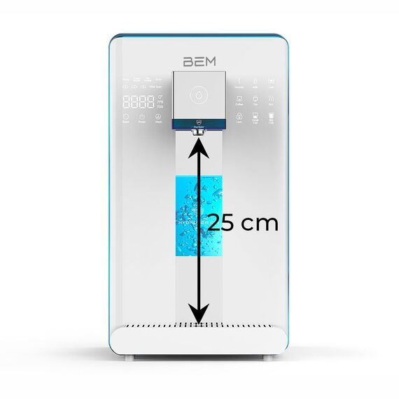 BEM Lina ist ein intelligenter Tischwasserfilter der neuen Generation, der Tiefenfiltration, Erwärmung, Kühlung und Anreicherung mit molekularem Wasserstoff kombiniert. Kein Wasseranschluss erforderlich – einfach Wasser in den Tank füllen und genießen!