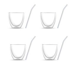 8-er Set: Vier Doppelwandige Kaffee Gläser (ohne Griff, je 240 ml) & vier wiederverwendbare Strohhalme aus Borosilikatglas GRATIS