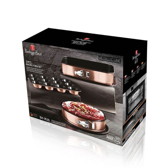 Berlinger Haus Metallic Line Rose Gold Edition 3-teiliges Springform-Set mit Muffinform, in Roségold