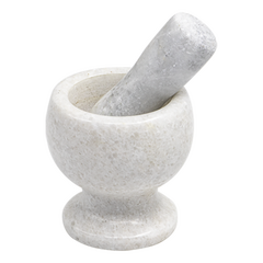 Marmormörser  Der Mörser aus strrukturiertem Marmor eignet sich hervorragend zum Zermahlen von Samen, trockenen Gewürzen, Kräutern, Mohn sowie zur Herstellung eines köstlichen Pesto aus frischem Basilikum, Ölivenöl, geriebenem Parmesan und Pinienkernen. Einsatzbereiche...