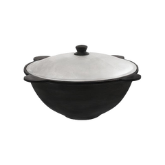 Uzbekischer Kasan - Wok aus Gusseisen, mit Aludeckel, 10 L