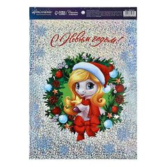 Deko-Aufkleber 2-tlg – Neujahr 2026, Pferd mit Kranz, Holografisch, 21 x 29,5 cm