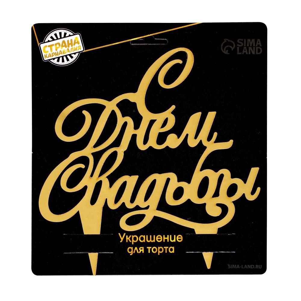 Tortendeko Hochzeit / С Днём Свадьбы, aus Karton in Gold, 18.5×18 cm