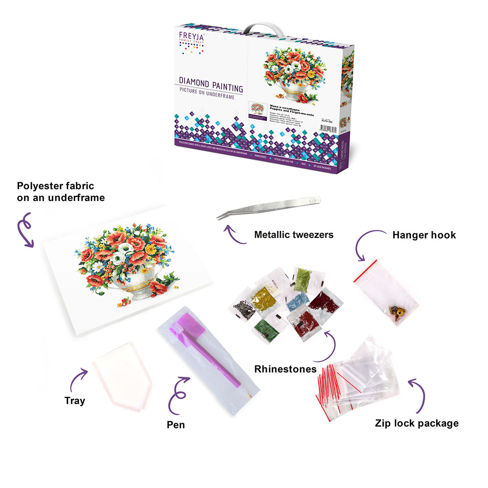 - dank der Acrylkristalle ähnelt das Funkeln des fertigen Werks dem Schimmern von echten Kristallen