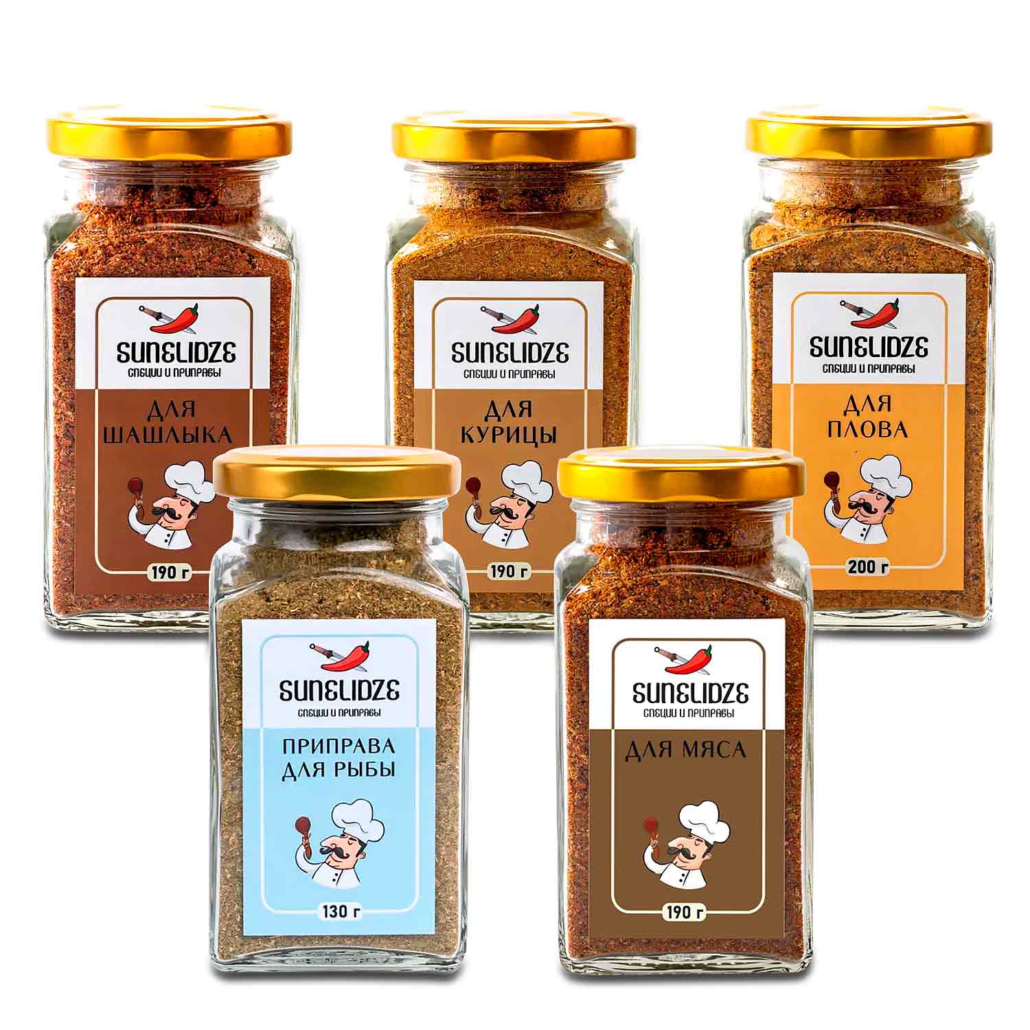 Sunelidze Gewürz-Set – 5 Würzmischungen für Fleisch, Geflügel, Fisch & Reisgerichte