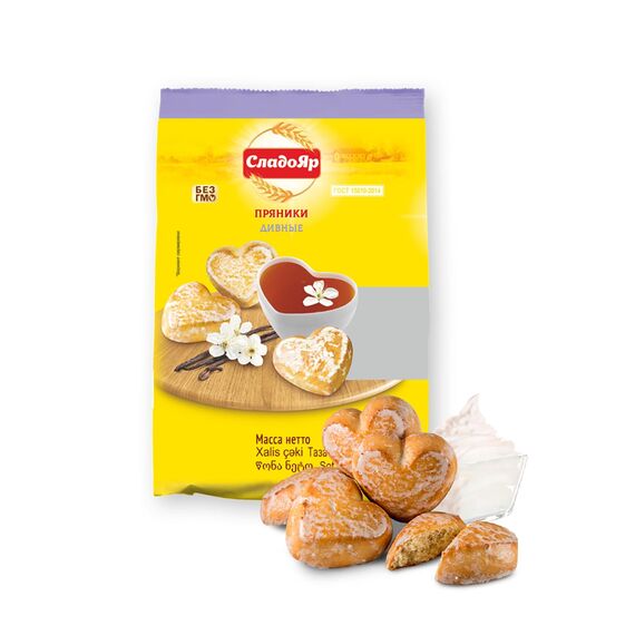 Traditionelle russische Lebkuchen-Herzen – süße Versuchung mit zarter Cremefüllung!Genießen Sie diese SladoJar Prjaniki Sahne Herzen – klassische russische Lebkuchen in herzförmiger Form mit einer zartschmelzenden Cremefüllung. Ein perfekter süßer Snack für zwischendurch oder als liebevolles Geschenk!