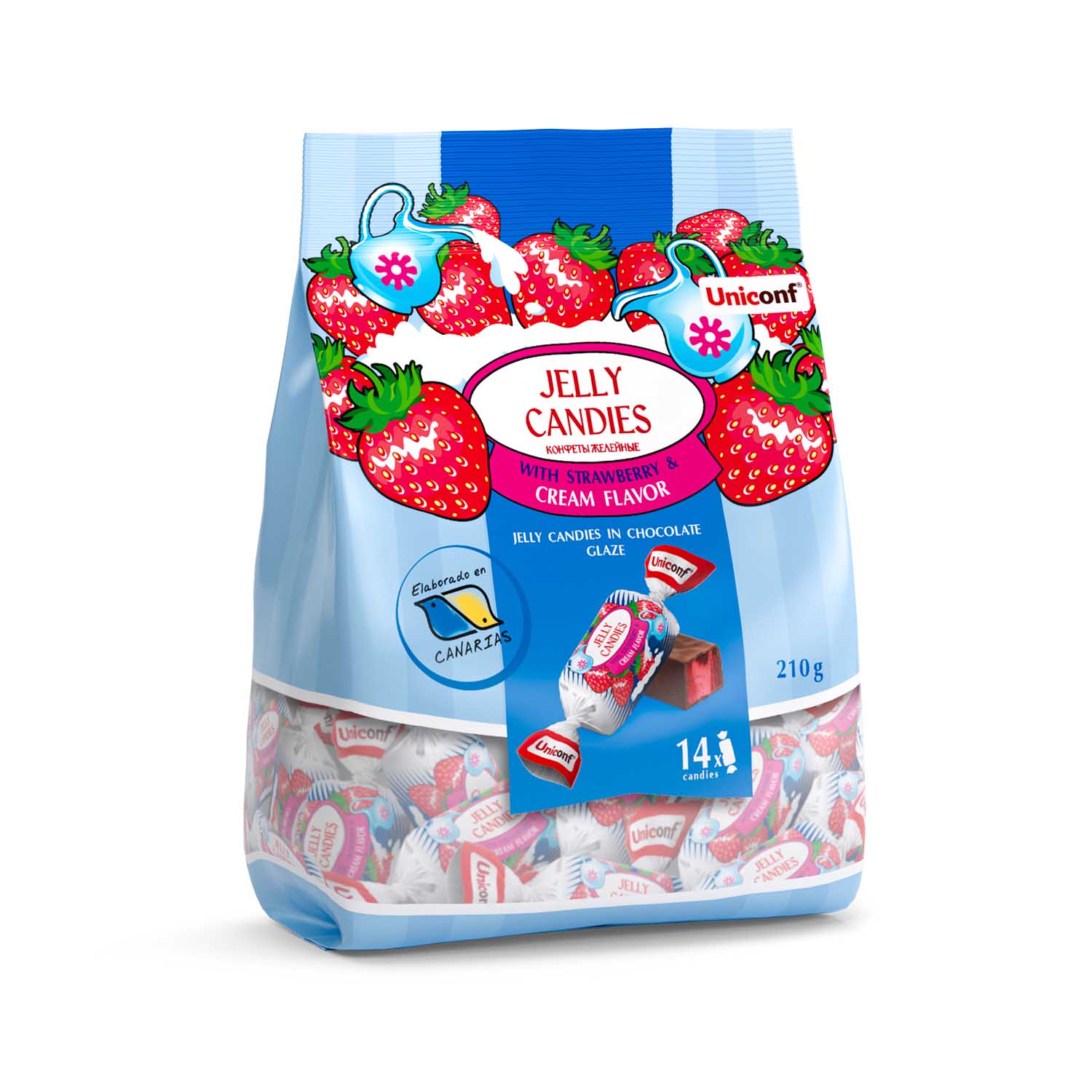 Schokoliertes Geleekonfekt mit Erdbeer-Sahne-Geschmack, 210g
