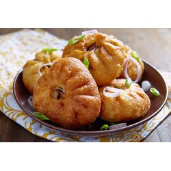 Ein herzhaftes Familiengericht. Hühnerhack mit geriebener Kartoffel und Kräutern mischen. Der Dampf gart alles gleichmäßig und hält die Füllung saftig. Garzeit: 25–30 Minuten.