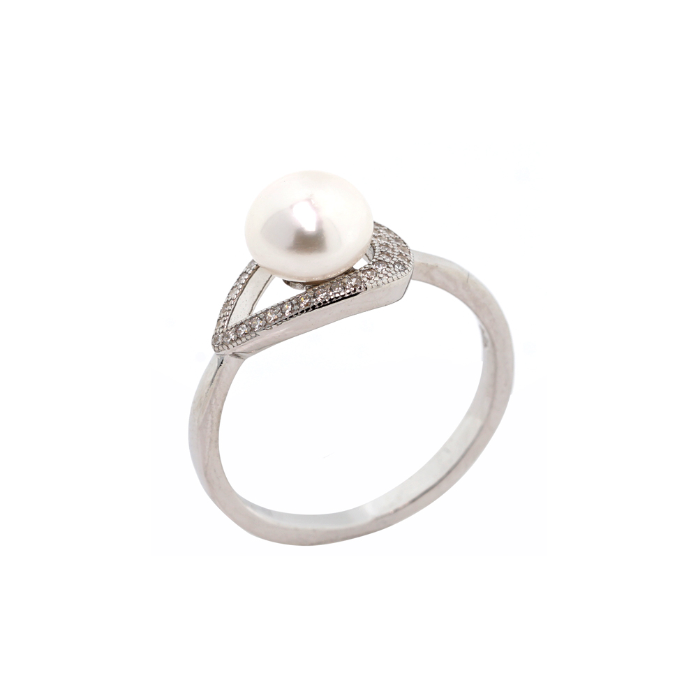 Damenring in Tropfenform aus 925 Silber mit Perle und Zirkonia