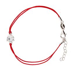 Rotes Fadenarmband mit rundem Zirkonia-Stein in 925 Silber Fassung