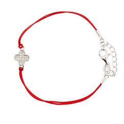 Rotes Fadenarmband mit vierblättrigem Kleeblatt aus 925 Silber und Zirkonia