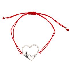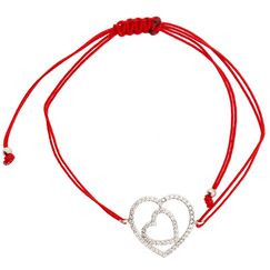 Fadenarmband in Rot mit Doppelherzanhänger aus 925 Silber mit Zirkonia