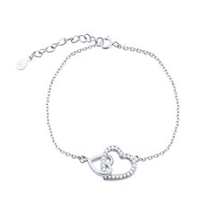Doppelherz-Handkette aus 925 Silber mit farblosen Zirkonia, 20 cm