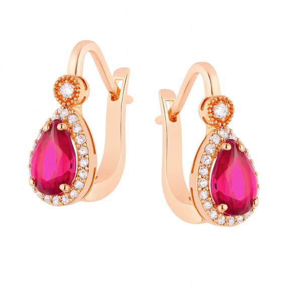 Ohrringe aus 585 Rotgold mit roten Rubinen und farblosen Zirkonia