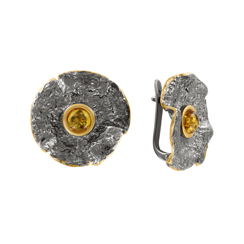 Die harmonische Kombination von glänzendem Goldton, dunklem Silber und leuchtendem Bernstein macht sie zu einem Highlight jeder Schmucksammlung.