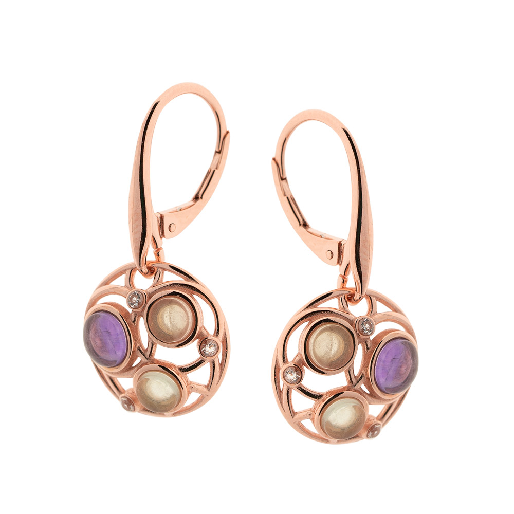 Ohrhänger rosévergoldet aus 925 Silber mit Amethyst, Quarz und Prehnit