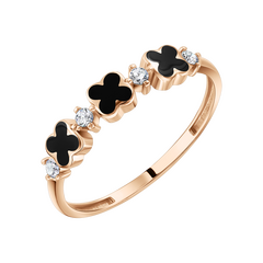 Schöne Damenring, Russisches Rotgold 585, mit Zirkonia und Emaille