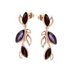 Stecker-Ohrhänger vergoldet aus 925 Silber mit Kirschbernstein und Amethyst