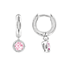Zarte Ringohrringe, Silber 925, mit 2 rosa Zirkonia, Höhe ca. 18 mm