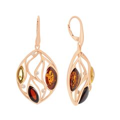 Ohrhänger vergoldet in 925 Silber mit Kirschbernstein, Bernstein, Zitronenbernstein