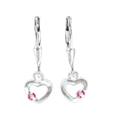 Hübsche Ohrhänger mit Herzen, Silber 925, mit 2 mit rosa Zirkonia, Höhe ca. 25 mm