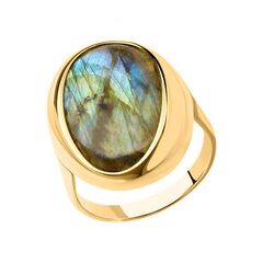 Einzigartiger Damenring, Silber 925, vergoldet, mit Labradorit - Größe ca. 20x15 mm, Frontbreite ca. 21 mm