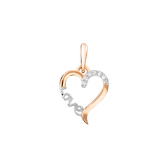 Zarter herzförmiger Anhänger, Russisches Rotgold 585, mit 6 Zirkonia, mit der Aufschrift "Love", Breite ca. 13 mm, Höhe ca. 22 mm