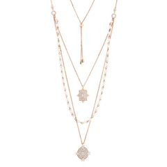Collier 3-rhg aus vergoldetem 925 Silber mit 2 Anhängern, Perlen und Zirkonia versetzt