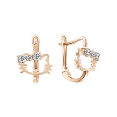 Kinder Ohrringe Kätzchen aus Rotgold 585 mit Zirkonia