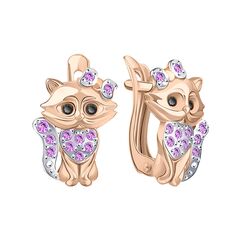 Kinderohrringe Katze aus 585 Rotgold mit rosa Zirkonia