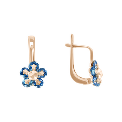 Zarte Kinderohrringe, Russisches Rotgold 585, mit 10 blauen Zirkonia, Höhe ca. 12 mm