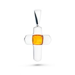 Kreuz Anhänger aus 925 Silber mit Bernstein