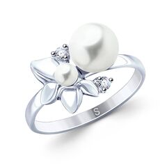 Damenring aus Sterlingsilber mit Perlen und Zirkonium 18 mm
