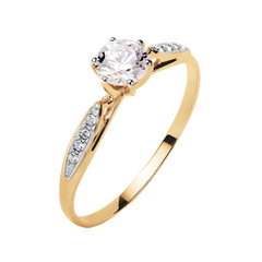 Schöner Damenring, Gelbgold 585, mit 9 Zirkonia, Durchmesser des zentralen Zirkonia ca. 5 mm