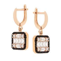 Ohrhänger aus vergoldetem 925 Silber mit weißen & schwarzen Zirkonia, quadratisch