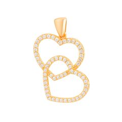 Doppelherzanhänger aus 925 Silber mit Zirkonia, vergoldet + Silberkette Gratis